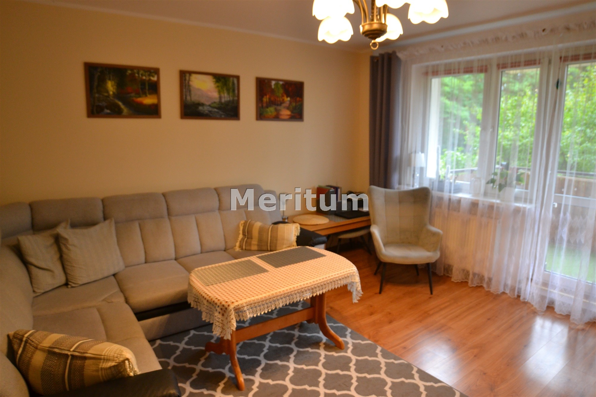 Mieszkanie jest słoneczne, dwustronne, wystawa okien północ - południe. Wszystkie okna PCV, z dużego pokoju wyjście na przestronny balkon. Widok z balkonu na las.