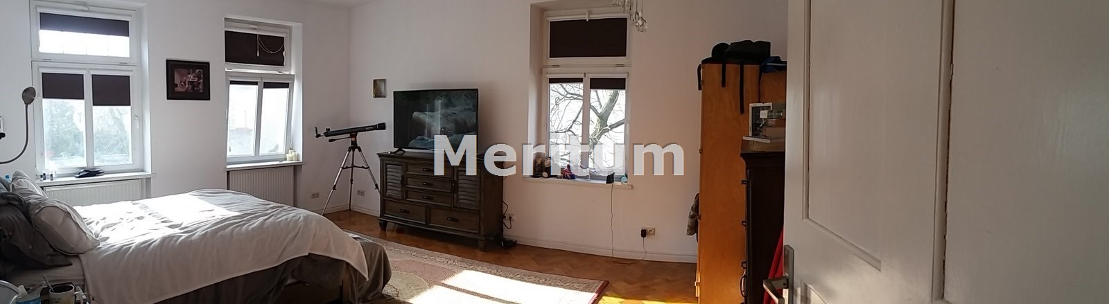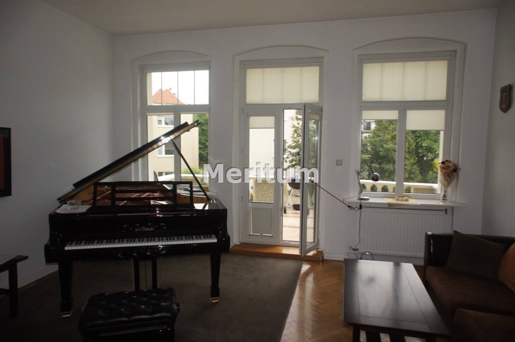 The apartment is located in silent and luxury historical district close to the downtown. The flat is on the second floor of 100 years old restored residence. It contains 4 rooms (30m2, 22 m2 and 21 m2) , hall (24m2), kitchen (14m2) and bathroom (6m2). Two balconies are turned in the west and east with beautiful view of old buildings of the university and monumental basilica. The kitchen is fully equipped; rooms are empty without furniture, the bathroom contains shower and bath. The kitchen is connected with additional room (5m2) with function of pantry and laundry. The apartment has got own heating system with gas furnace. The area of residence is surrounded with the fence and secured with video monitoring. Inside there is a garage for one car. In walking distance there are big shopping center, the philharmonic, theatre and lots of green area. The rent fee is 4500 PLN , additional charges for electricity, water, gas and garbage.